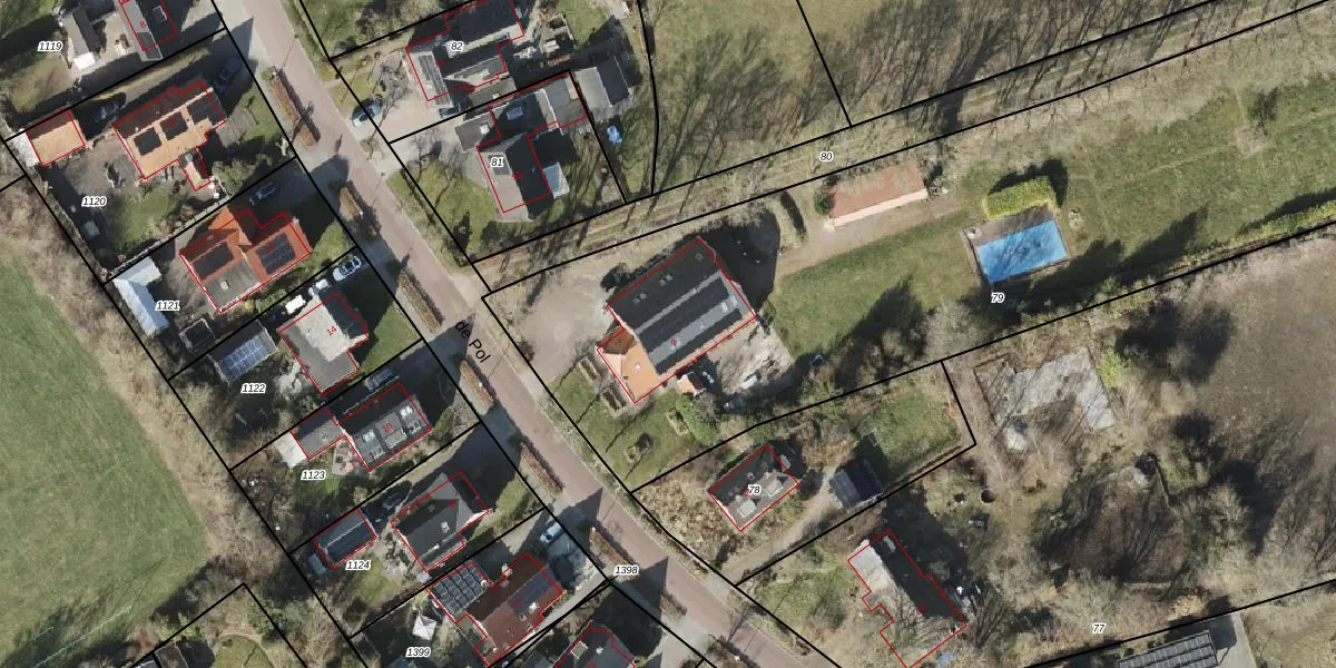 Het perceel waarop de Pol 9 staat heeft een oppervlakte van 4770 m². Dit is een zeer groot perceel. De perceeloppervlakte wordt geregistreerd door het Kadaster. Gedetailleerde informatie over de maten van dit perceel kunt u vinden in het rapport Kadastrale kaart met maatvoering van de Pol 9.