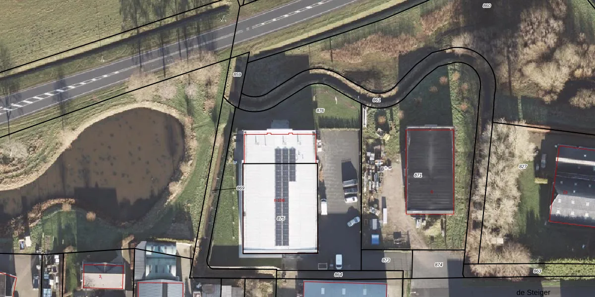 Het perceel waarop de Steiger 10 staat heeft een oppervlakte van 1965 m². Dit is een zeer groot perceel. De perceeloppervlakte wordt geregistreerd door het Kadaster. Gedetailleerde informatie over de maten van dit perceel kunt u vinden in het rapport Kadastrale kaart met maatvoering van de Steiger 10.