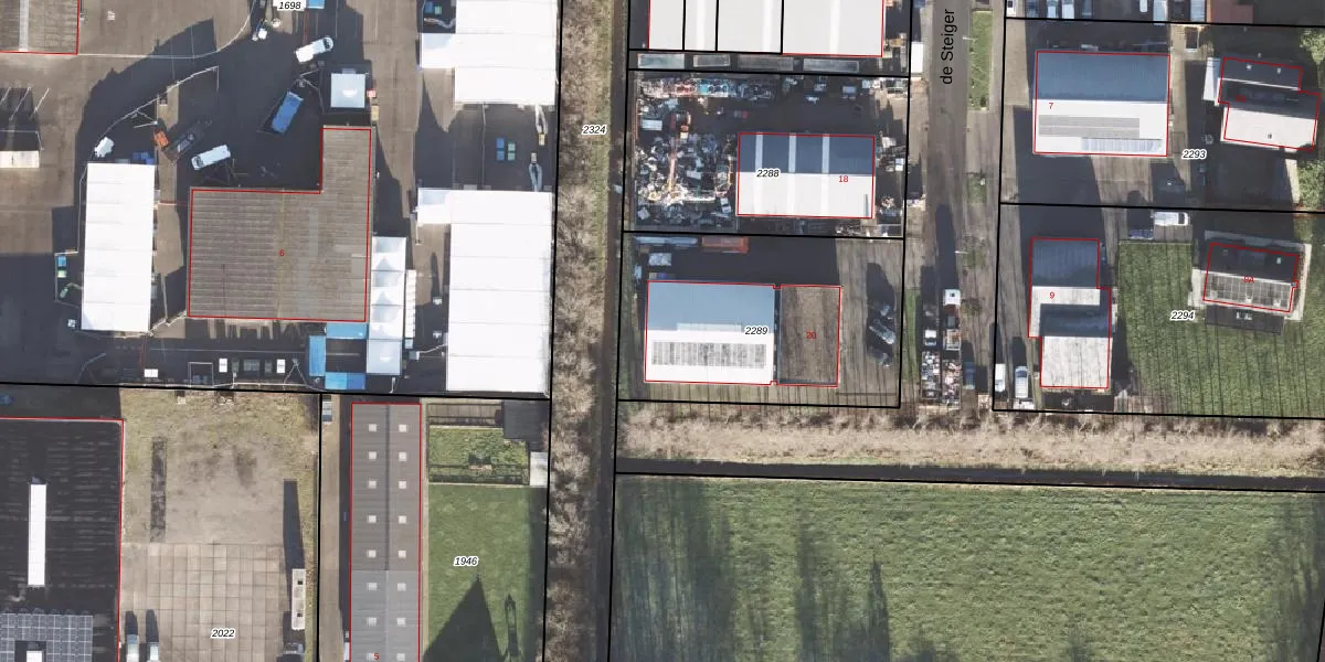 Het perceel waarop de Steiger 20 staat heeft een oppervlakte van 1083 m². Dit is een zeer groot perceel. De perceeloppervlakte wordt geregistreerd door het Kadaster. Gedetailleerde informatie over de maten van dit perceel kunt u vinden in het rapport Kadastrale kaart met maatvoering van de Steiger 20.