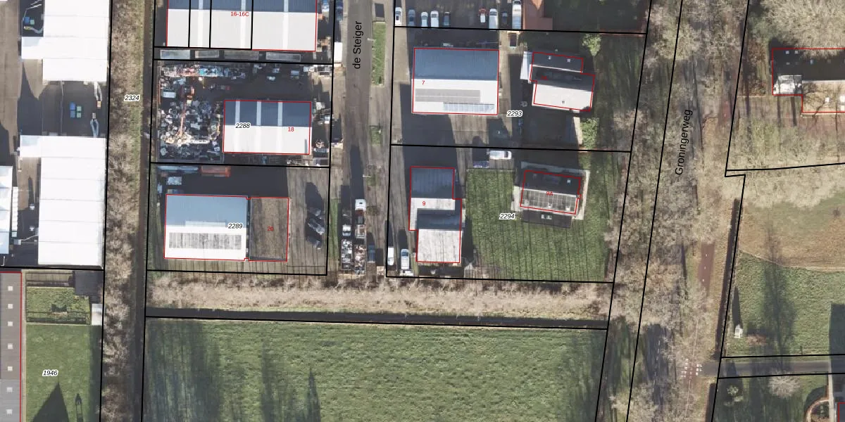 de Steiger 9 is gelegen op kadastraal perceel PZE00G2294. Deze kadastrale aanduiding is uniek en wordt gebruikt door het Kadaster om eigendomsrechten en andere zakelijke rechten vast te leggen. Het perceel maakt onderdeel uit van de kadastrale gemeente Peize.