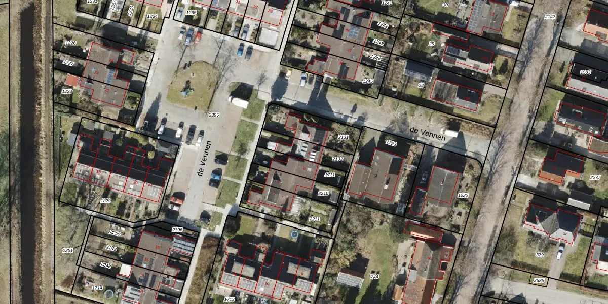Het perceel waarop de Vennen 4 staat heeft een oppervlakte van 186 m². Dit is een middelgroot perceel. De perceeloppervlakte wordt geregistreerd door het Kadaster. Gedetailleerde informatie over de maten van dit perceel kunt u vinden in het rapport Kadastrale kaart met maatvoering van de Vennen 4.