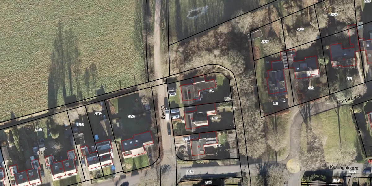 Het perceel waarop Esweg 44 staat heeft een oppervlakte van 495 m². Dit is een groot perceel. De perceeloppervlakte wordt geregistreerd door het Kadaster. Gedetailleerde informatie over de maten van dit perceel kunt u vinden in het rapport Kadastrale kaart met maatvoering van Esweg 44.