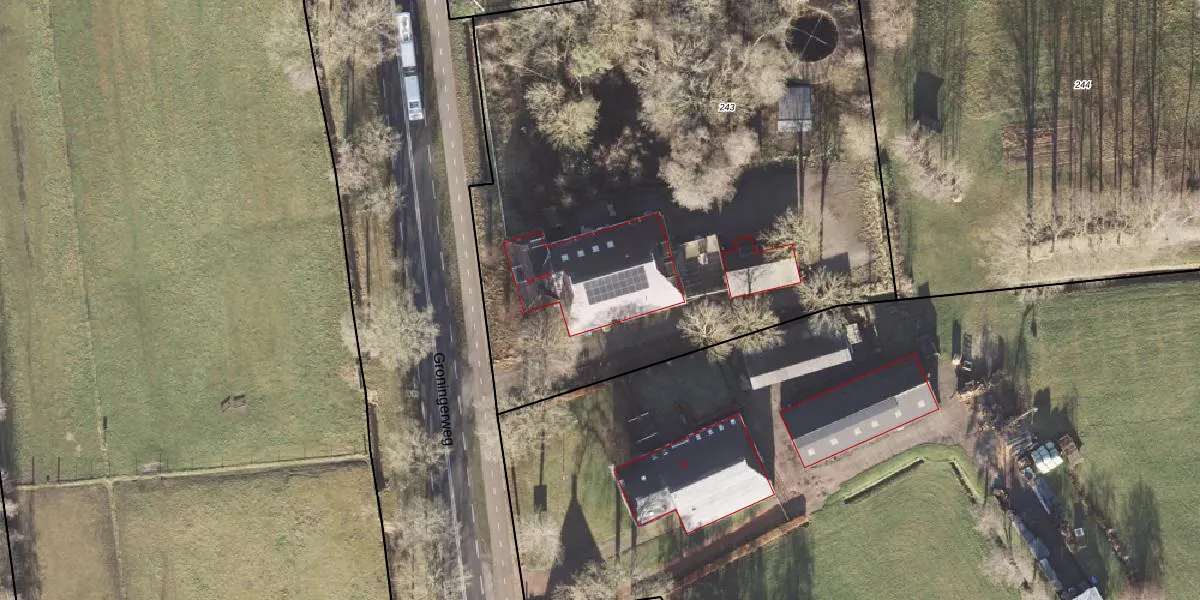 Het perceel waarop het adres ligt is PZE00-M-243. De afkorting 'PZE00' staat voor kadastrale gemeente Peize. Het perceel is 4050 m² groot. Dat is kleiner dan de gemiddelde perceeloppervlakte in Peize, dat op 7882,76 m² ligt. De grootste perceeloppervlakte in de kadastrale gemeente is 72,0 ha. De kleinste oppervlakte bedraagt 0 m². Op het perceel liggen in totaal 4 adressen. De huidige grenzen van het perceel zijn digitaal in de Basisregistratie Kadaster (BRK) geregistreerd op 25-04-2023.
