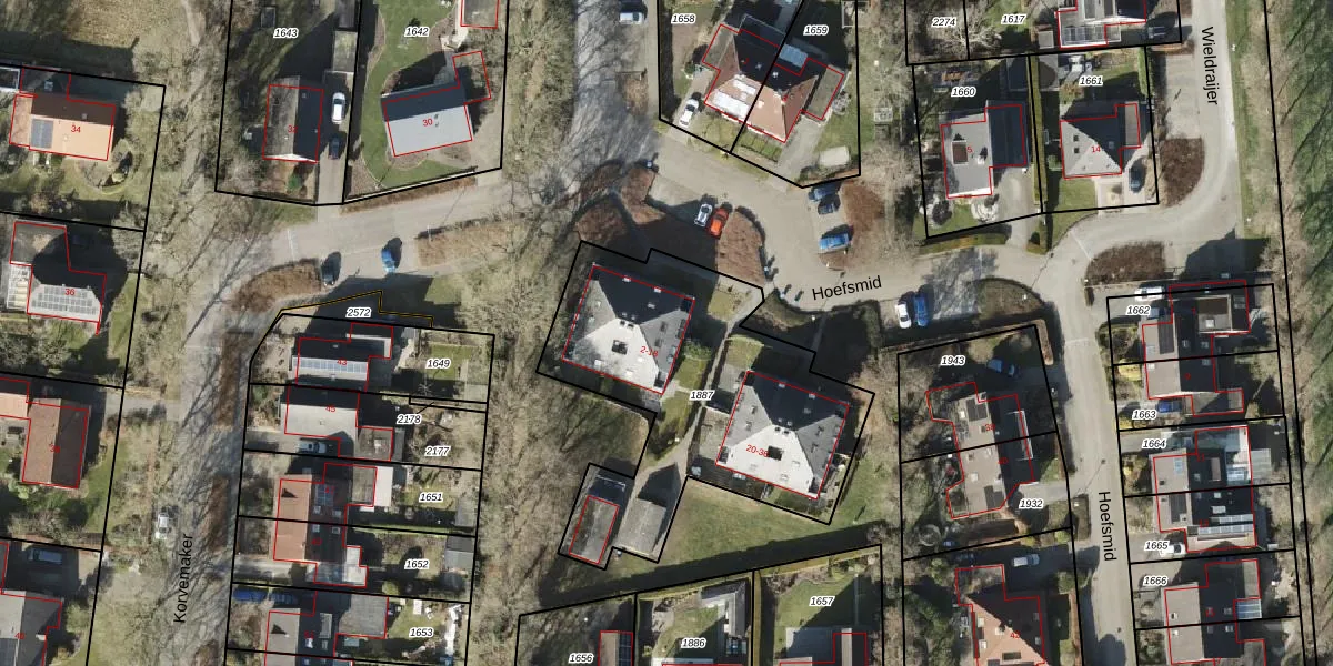 Het perceel waarop Hoefsmid 12 staat heeft een oppervlakte van 1363 m². Dit is een zeer groot perceel. De perceeloppervlakte wordt geregistreerd door het Kadaster. Gedetailleerde informatie over de maten van dit perceel kunt u vinden in het rapport Kadastrale kaart met maatvoering van Hoefsmid 12.