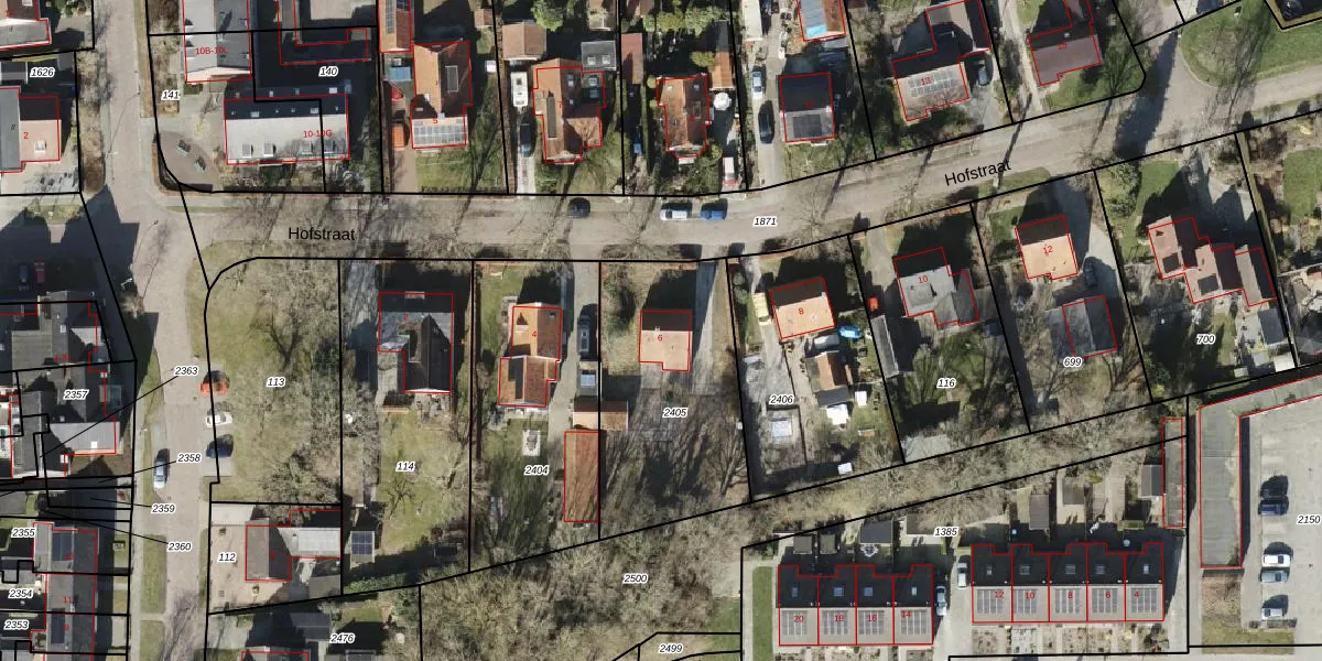 Het perceel waarop Hofstraat 6 staat heeft een oppervlakte van 840 m². Dit is een groot perceel. De perceeloppervlakte wordt geregistreerd door het Kadaster. Gedetailleerde informatie over de maten van dit perceel kunt u vinden in het rapport Kadastrale kaart met maatvoering van Hofstraat 6.