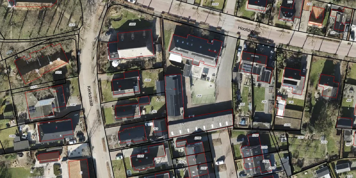 Het perceel waarop Hoofdstraat 54 staat heeft een oppervlakte van 2300 m². Dit is een zeer groot perceel. De perceeloppervlakte wordt geregistreerd door het Kadaster. Gedetailleerde informatie over de maten van dit perceel kunt u vinden in het rapport Kadastrale kaart met maatvoering van Hoofdstraat 54.