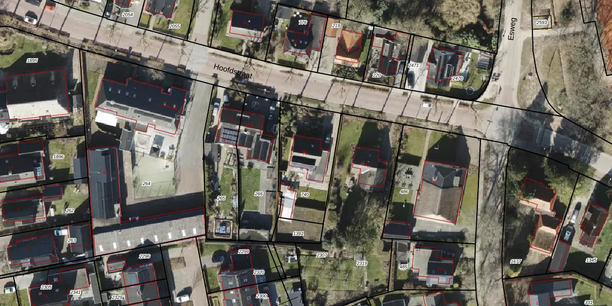 Het perceel waarop Hoofdstraat 56-B staat heeft een oppervlakte van 655 m². Dit is een groot perceel. De perceeloppervlakte wordt geregistreerd door het Kadaster. Gedetailleerde informatie over de maten van dit perceel kunt u vinden in het rapport Kadastrale kaart met maatvoering van Hoofdstraat 56-B.