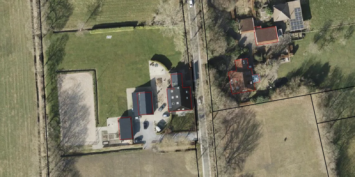 Het perceel waarop Hooghaar 6 staat heeft een oppervlakte van 1,5 ha. Dit is een zeer groot perceel. De perceeloppervlakte wordt geregistreerd door het Kadaster. Gedetailleerde informatie over de maten van dit perceel kunt u vinden in het rapport Kadastrale kaart met maatvoering van Hooghaar 6.