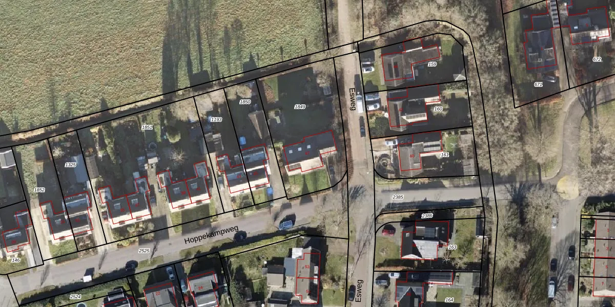 Het perceel waarop Hoppekampweg 47 staat heeft een oppervlakte van 950 m². Dit is een groot perceel. De perceeloppervlakte wordt geregistreerd door het Kadaster. Gedetailleerde informatie over de maten van dit perceel kunt u vinden in het rapport Kadastrale kaart met maatvoering van Hoppekampweg 47.