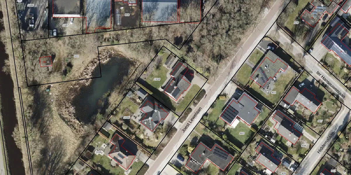 Het perceel waarop Joest Lewelaan 2 staat heeft een oppervlakte van 854 m². Dit is een groot perceel. De perceeloppervlakte wordt geregistreerd door het Kadaster. Gedetailleerde informatie over de maten van dit perceel kunt u vinden in het rapport Kadastrale kaart met maatvoering van Joest Lewelaan 2.