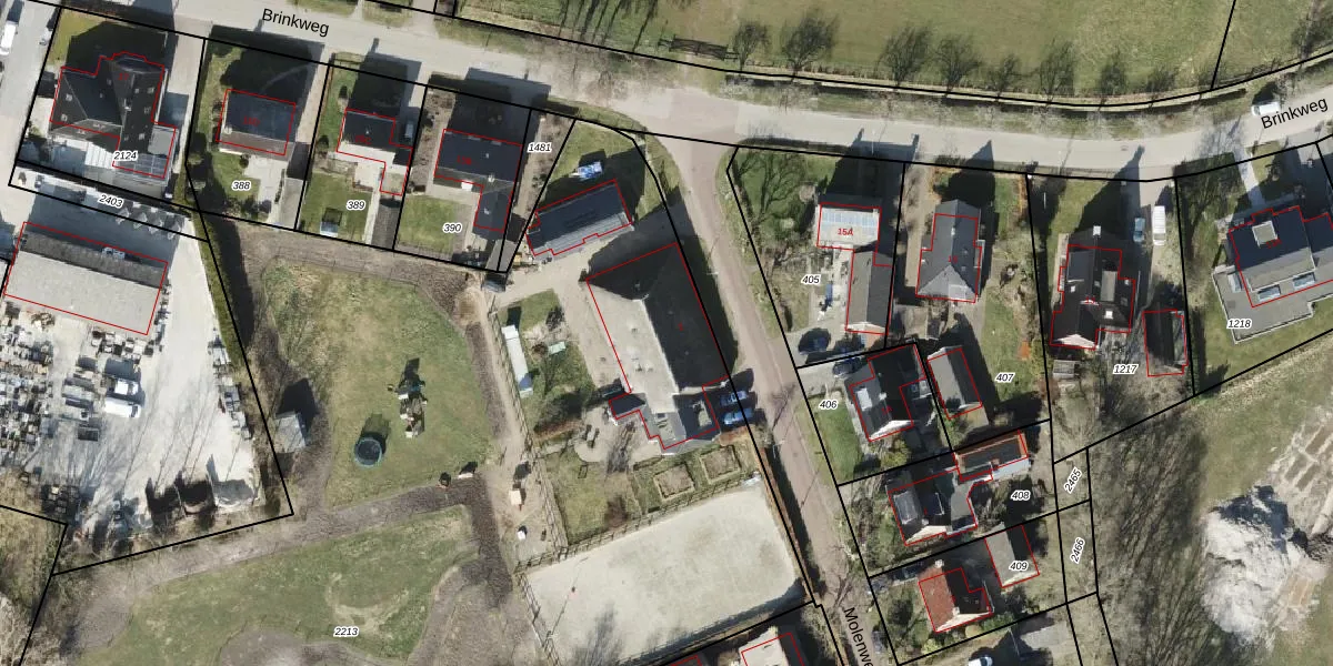 Het perceel waarop Molenweg 2 staat heeft een oppervlakte van 8165 m². Dit is een zeer groot perceel. De perceeloppervlakte wordt geregistreerd door het Kadaster. Gedetailleerde informatie over de maten van dit perceel kunt u vinden in het rapport Kadastrale kaart met maatvoering van Molenweg 2.
