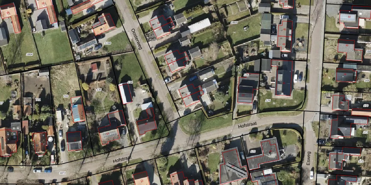 Het perceel waarop Oosterweg 4 staat heeft een oppervlakte van 5590 m². Dit is een zeer groot perceel. De perceeloppervlakte wordt geregistreerd door het Kadaster. Gedetailleerde informatie over de maten van dit perceel kunt u vinden in het rapport Kadastrale kaart met maatvoering van Oosterweg 4.