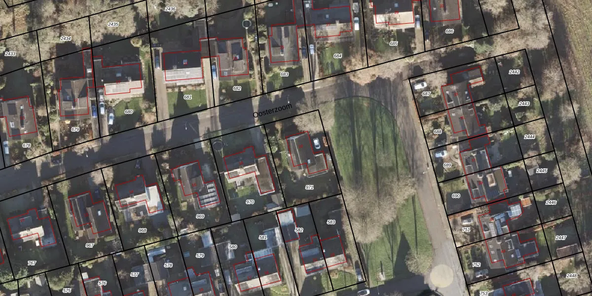 Het perceel waarop Oosterzoom 20 staat heeft een oppervlakte van 554 m². Dit is een groot perceel. De perceeloppervlakte wordt geregistreerd door het Kadaster. Gedetailleerde informatie over de maten van dit perceel kunt u vinden in het rapport Kadastrale kaart met maatvoering van Oosterzoom 20.