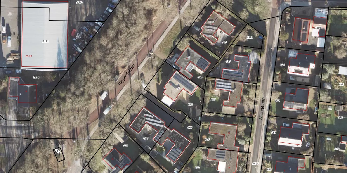 Gebruik de zoekbalk of klik op een perceel voor informatie over de adressen binnen dit perceel.