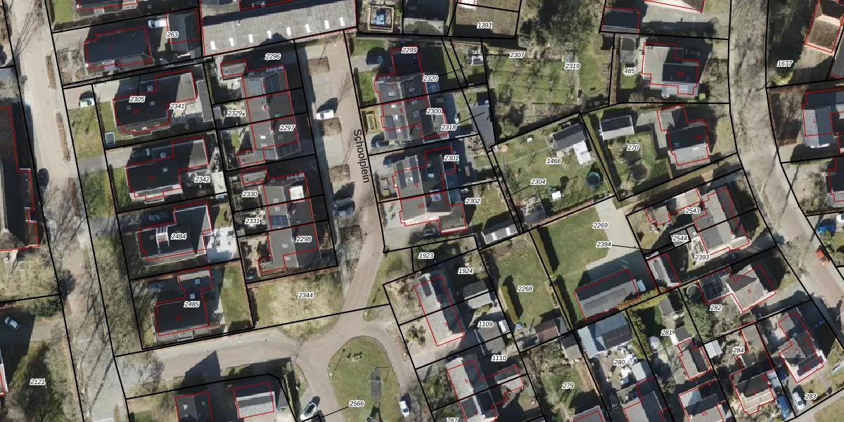 Het perceel waarop Schoolplein 10 staat heeft een oppervlakte van 385 m². Dit is een groot perceel. De perceeloppervlakte wordt geregistreerd door het Kadaster. Gedetailleerde informatie over de maten van dit perceel kunt u vinden in het rapport Kadastrale kaart met maatvoering van Schoolplein 10.