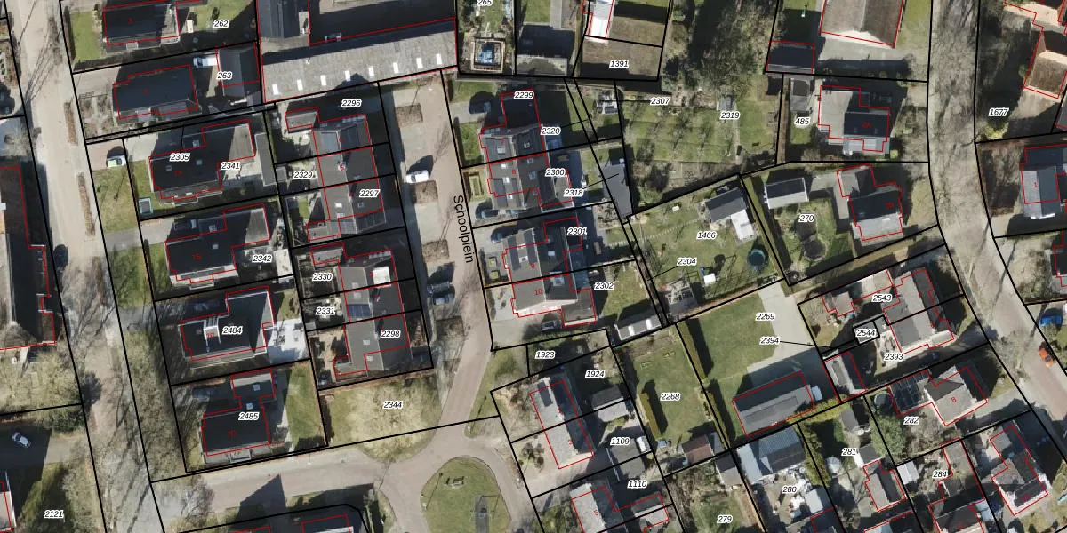 Het perceel waarop Schoolplein 9 staat heeft een oppervlakte van 325 m². Dit is een groot perceel. De perceeloppervlakte wordt geregistreerd door het Kadaster. Gedetailleerde informatie over de maten van dit perceel kunt u vinden in het rapport Kadastrale kaart met maatvoering van Schoolplein 9.