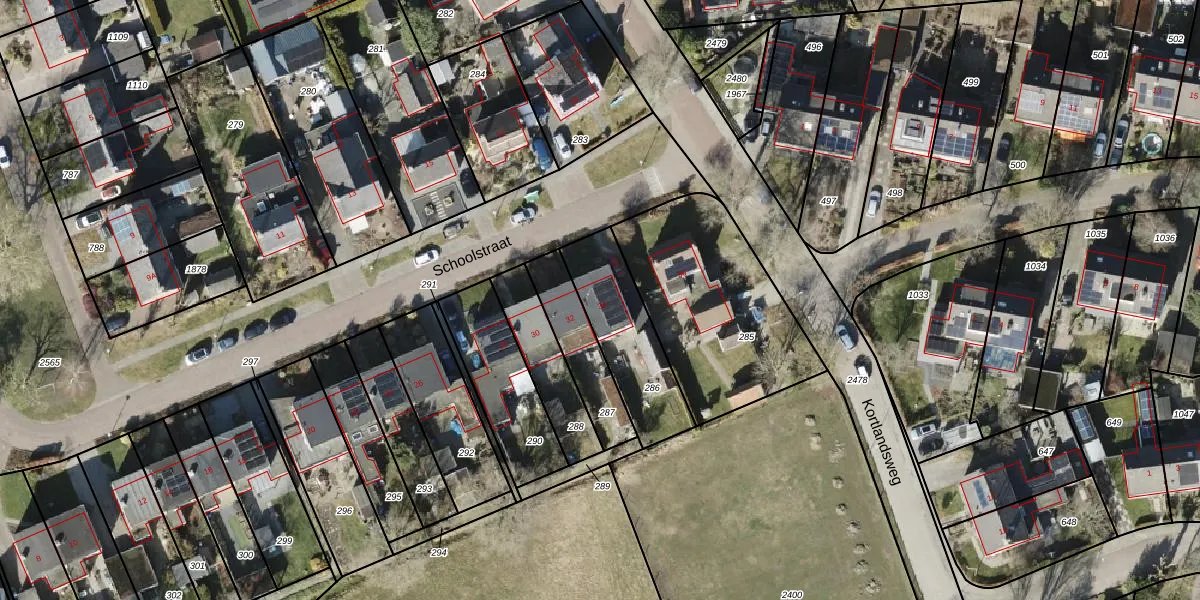 Het perceel waarop Schoolstraat 34 staat heeft een oppervlakte van 345 m². Dit is een groot perceel. De perceeloppervlakte wordt geregistreerd door het Kadaster. Gedetailleerde informatie over de maten van dit perceel kunt u vinden in het rapport Kadastrale kaart met maatvoering van Schoolstraat 34.