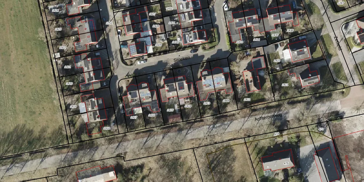 Het perceel waarop Stoeken 38 staat heeft een oppervlakte van 297 m². Dit is een middelgroot perceel. De perceeloppervlakte wordt geregistreerd door het Kadaster. Gedetailleerde informatie over de maten van dit perceel kunt u vinden in het rapport Kadastrale kaart met maatvoering van Stoeken 38.