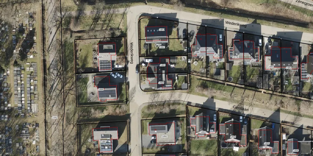 Wederikweg 23 is gelegen op kadastraal perceel PZE00I1884. Deze kadastrale aanduiding is uniek en wordt gebruikt door het Kadaster om eigendomsrechten en andere zakelijke rechten vast te leggen. Het perceel maakt onderdeel uit van de kadastrale gemeente Peize.
