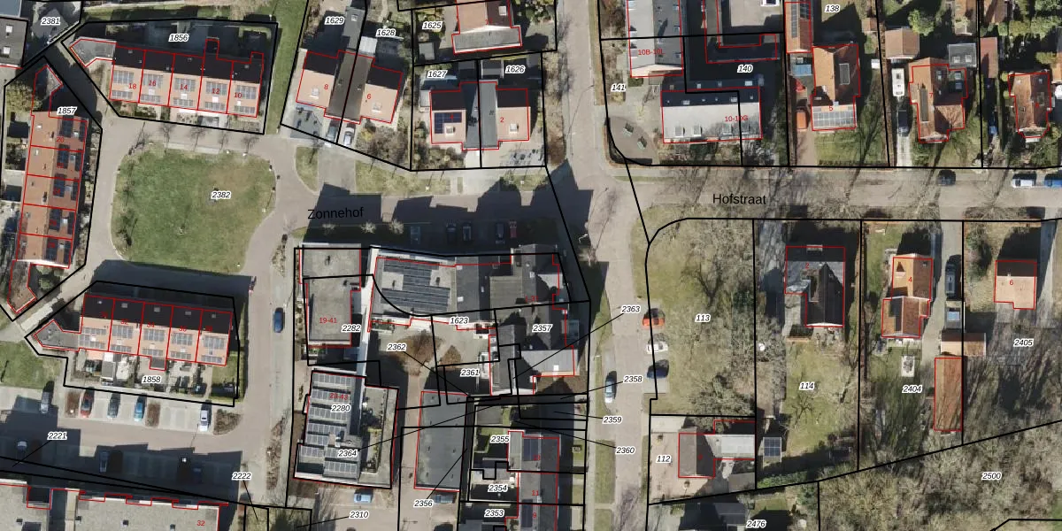 Het perceel waarop Zonnehof 1 staat heeft een oppervlakte van 1425 m². Dit is een zeer groot perceel. De perceeloppervlakte wordt geregistreerd door het Kadaster. Gedetailleerde informatie over de maten van dit perceel kunt u vinden in het rapport Kadastrale kaart met maatvoering van Zonnehof 1.