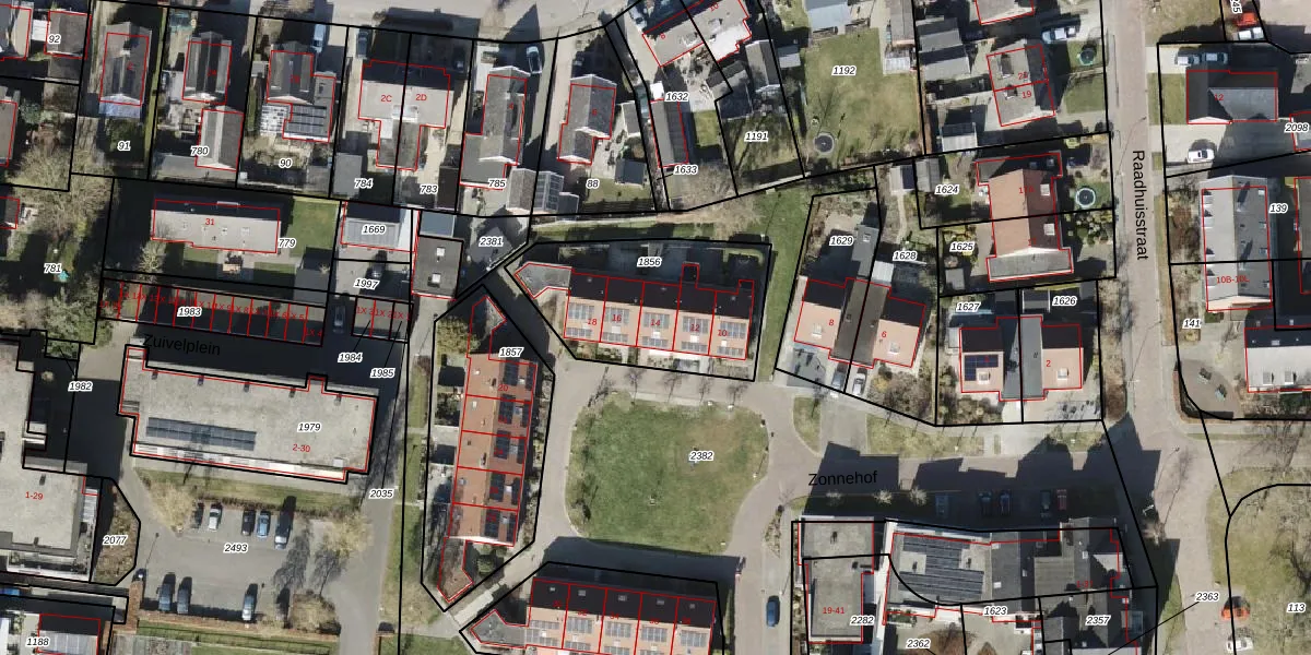 Zonnehof 14 is gelegen op kadastraal perceel PZE00G1856. Deze kadastrale aanduiding is uniek en wordt gebruikt door het Kadaster om eigendomsrechten en andere zakelijke rechten vast te leggen. Het perceel maakt onderdeel uit van de kadastrale gemeente Peize.
