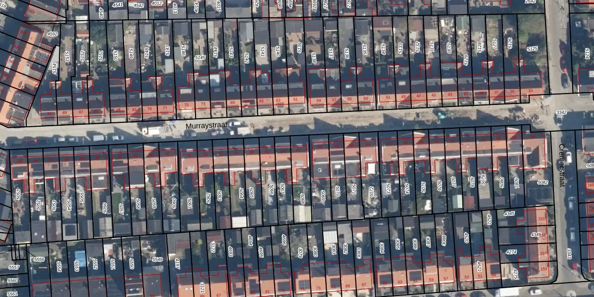 Het perceel waarop Murraystraat 62 staat heeft een oppervlakte van 188 m². Dit is een middelgroot perceel. De perceeloppervlakte wordt geregistreerd door het Kadaster. Gedetailleerde informatie over de maten van dit perceel kunt u vinden in het rapport Kadastrale kaart met maatvoering van Murraystraat 62.