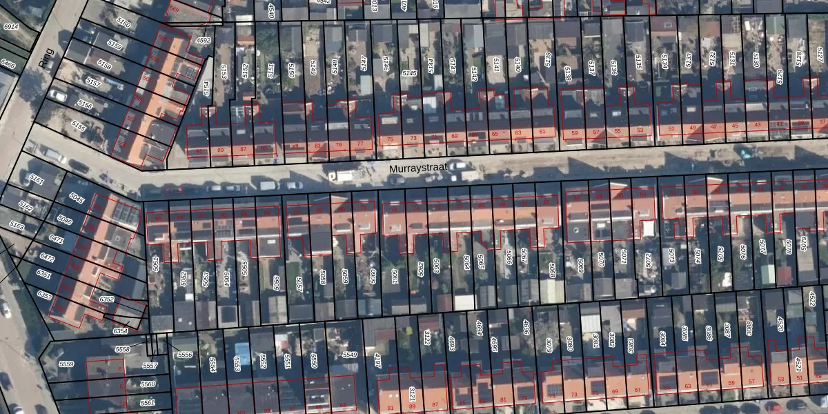 Het perceel waarop Murraystraat 74 staat heeft een oppervlakte van 159 m². Dit is een middelgroot perceel. De perceeloppervlakte wordt geregistreerd door het Kadaster. Gedetailleerde informatie over de maten van dit perceel kunt u vinden in het rapport Kadastrale kaart met maatvoering van Murraystraat 74.
