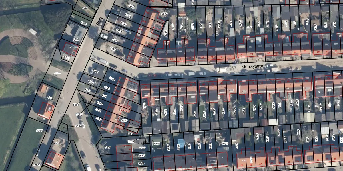 Het perceel waarop Murraystraat 90 staat heeft een oppervlakte van 165 m². Dit is een middelgroot perceel. De perceeloppervlakte wordt geregistreerd door het Kadaster. Gedetailleerde informatie over de maten van dit perceel kunt u vinden in het rapport Kadastrale kaart met maatvoering van Murraystraat 90.