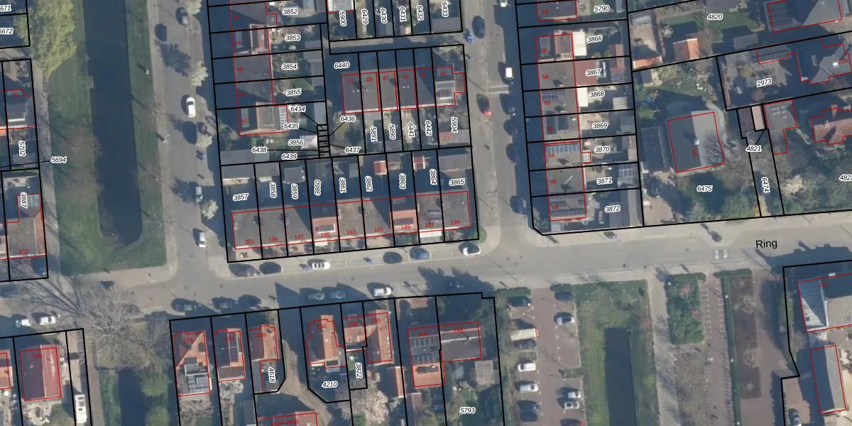 Het perceel waarop Ring 187 staat heeft een oppervlakte van 135 m². Dit is een middelgroot perceel. De perceeloppervlakte wordt geregistreerd door het Kadaster. Gedetailleerde informatie over de maten van dit perceel kunt u vinden in het rapport Kadastrale kaart met maatvoering van Ring 187.