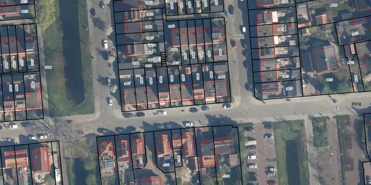 Gebruik de zoekbalk of klik op een perceel voor informatie over de adressen binnen dit perceel.