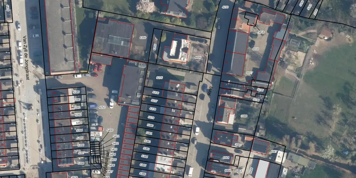 Gebruik de zoekbalk of klik op een perceel voor informatie over de adressen binnen dit perceel.