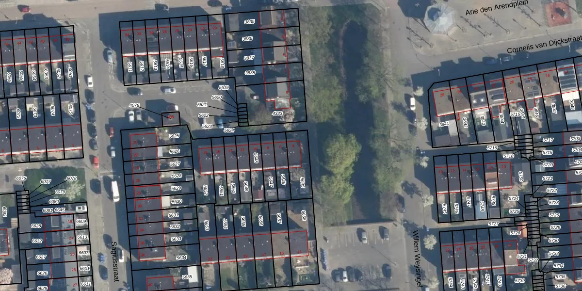 Het perceel waarop Sagiusstraat 4 staat heeft een oppervlakte van 176 m². Dit is een middelgroot perceel. De perceeloppervlakte wordt geregistreerd door het Kadaster. Gedetailleerde informatie over de maten van dit perceel kunt u vinden in het rapport Kadastrale kaart met maatvoering van Sagiusstraat 4.