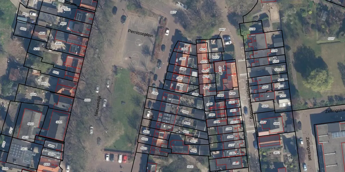 Gebruik de zoekbalk of klik op een perceel voor informatie over de adressen binnen dit perceel.
