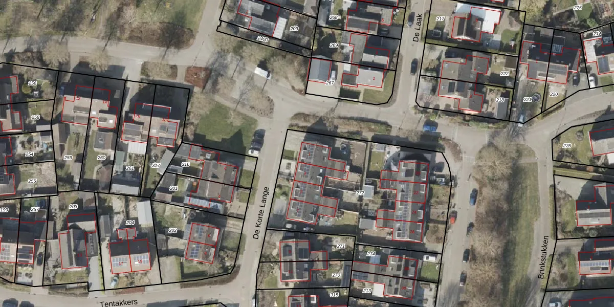 Het perceel waarop De Korte Lange 1 staat heeft een oppervlakte van 995 m². Dit is een groot perceel. De perceeloppervlakte wordt geregistreerd door het Kadaster. Gedetailleerde informatie over de maten van dit perceel kunt u vinden in het rapport Kadastrale kaart met maatvoering van De Korte Lange 1.