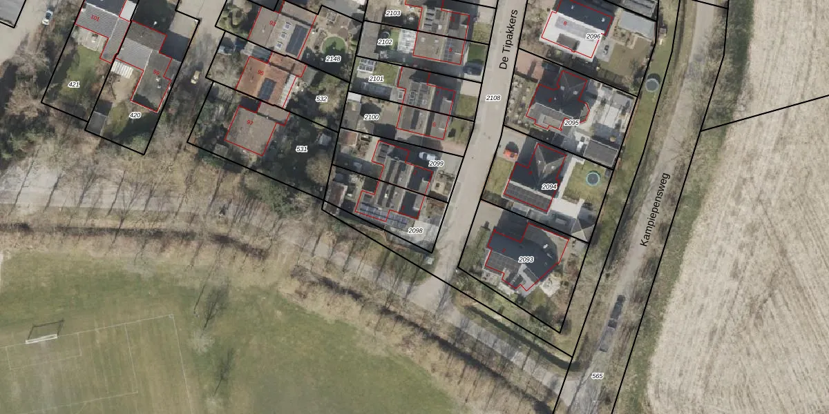 Het perceel waarop De Tipakkers 1 staat heeft een oppervlakte van 314 m². Dit is een groot perceel. De perceeloppervlakte wordt geregistreerd door het Kadaster. Gedetailleerde informatie over de maten van dit perceel kunt u vinden in het rapport Kadastrale kaart met maatvoering van De Tipakkers 1.