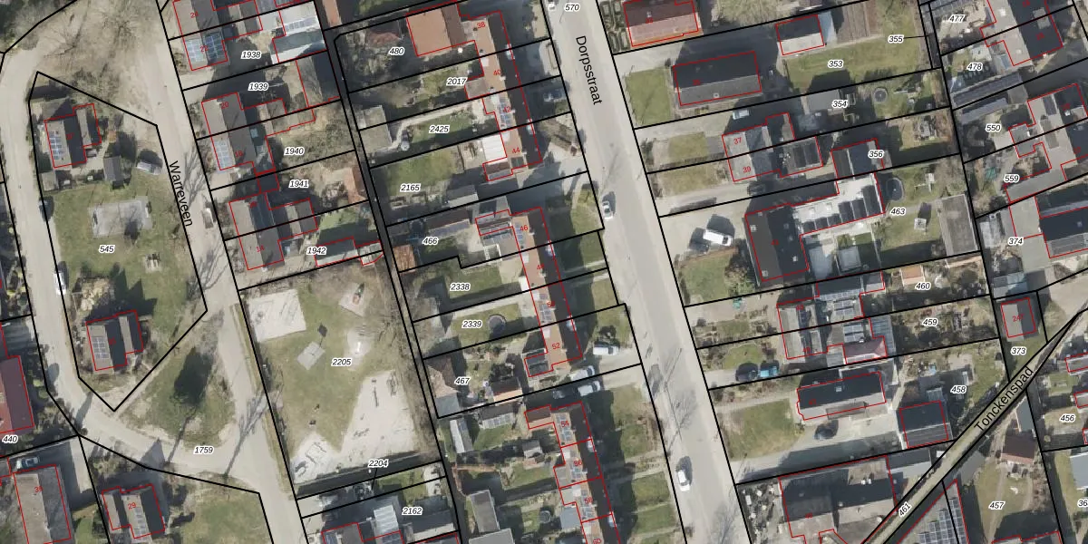 Gebruik de zoekbalk of klik op een perceel voor informatie over de adressen binnen dit perceel.