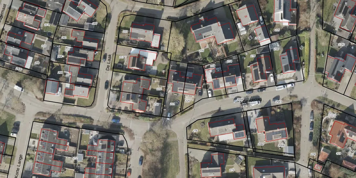 Het perceel waarop Grootslag 1 staat heeft een oppervlakte van 312 m². Dit is een groot perceel. De perceeloppervlakte wordt geregistreerd door het Kadaster. Gedetailleerde informatie over de maten van dit perceel kunt u vinden in het rapport Kadastrale kaart met maatvoering van Grootslag 1.