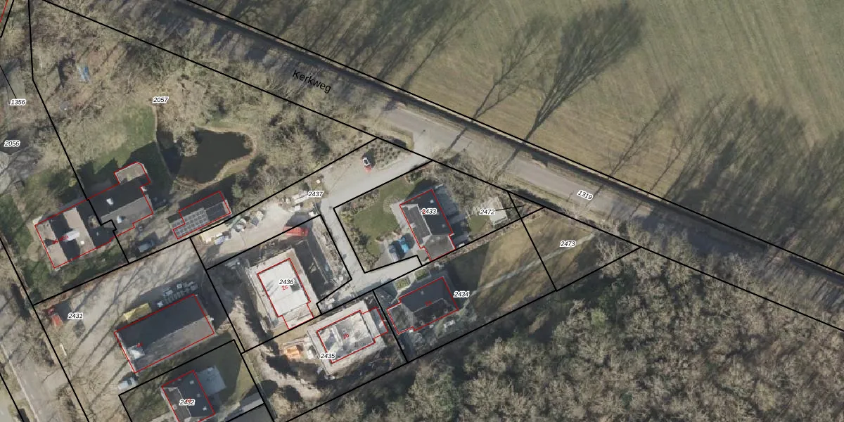 Kerkweg 2 is gelegen op kadastraal perceel HGV00T2433. Deze kadastrale aanduiding is uniek en wordt gebruikt door het Kadaster om eigendomsrechten en andere zakelijke rechten vast te leggen. Het perceel maakt onderdeel uit van de kadastrale gemeente Hoogeveen.