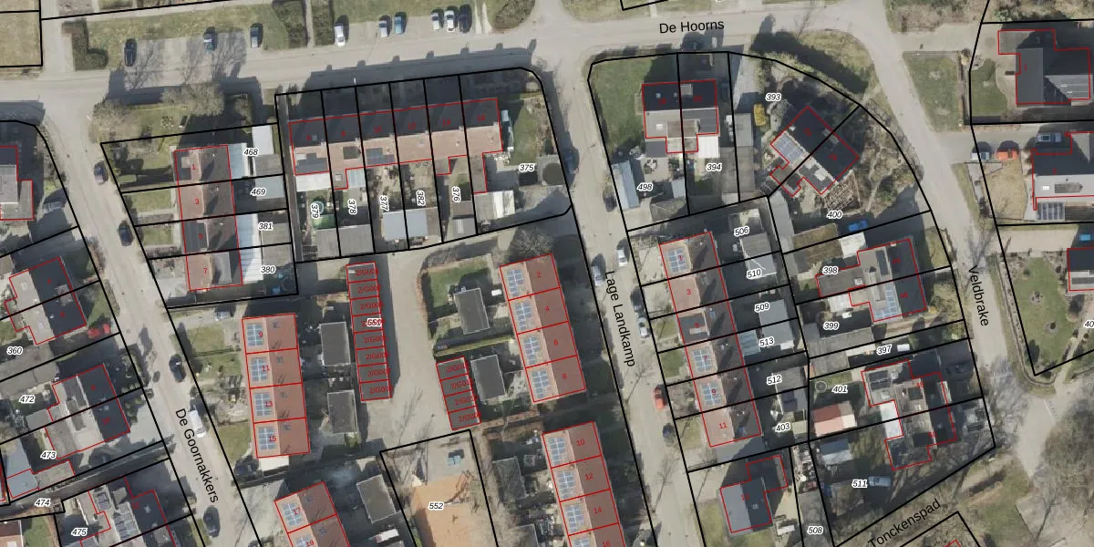Het perceel waarop Lage Landkamp 2 staat heeft een oppervlakte van 4384 m². Dit is een zeer groot perceel. De perceeloppervlakte wordt geregistreerd door het Kadaster. Gedetailleerde informatie over de maten van dit perceel kunt u vinden in het rapport Kadastrale kaart met maatvoering van Lage Landkamp 2.