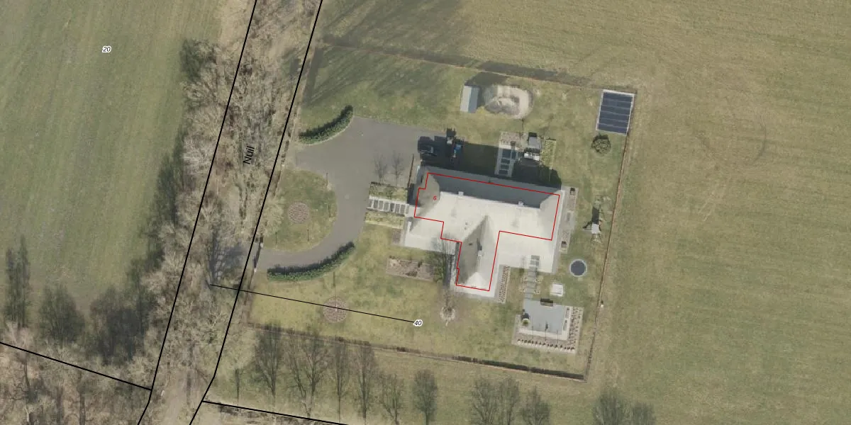 Het perceel waarop Nuil 6 staat heeft een oppervlakte van 2,6 ha. Dit is een zeer groot perceel. De perceeloppervlakte wordt geregistreerd door het Kadaster. Gedetailleerde informatie over de maten van dit perceel kunt u vinden in het rapport Kadastrale kaart met maatvoering van Nuil 6.