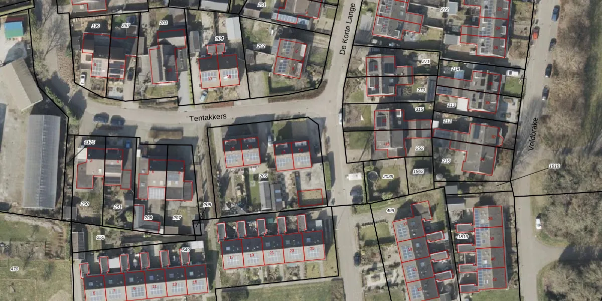 Het perceel waarop Tentakkers 16 staat heeft een oppervlakte van 1115 m². Dit is een zeer groot perceel. De perceeloppervlakte wordt geregistreerd door het Kadaster. Gedetailleerde informatie over de maten van dit perceel kunt u vinden in het rapport Kadastrale kaart met maatvoering van Tentakkers 16.