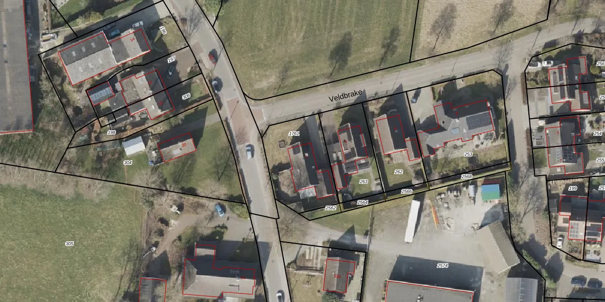 Het perceel waarop Veldbrake 2 staat heeft een oppervlakte van 592 m². Dit is een groot perceel. De perceeloppervlakte wordt geregistreerd door het Kadaster. Gedetailleerde informatie over de maten van dit perceel kunt u vinden in het rapport Kadastrale kaart met maatvoering van Veldbrake 2.