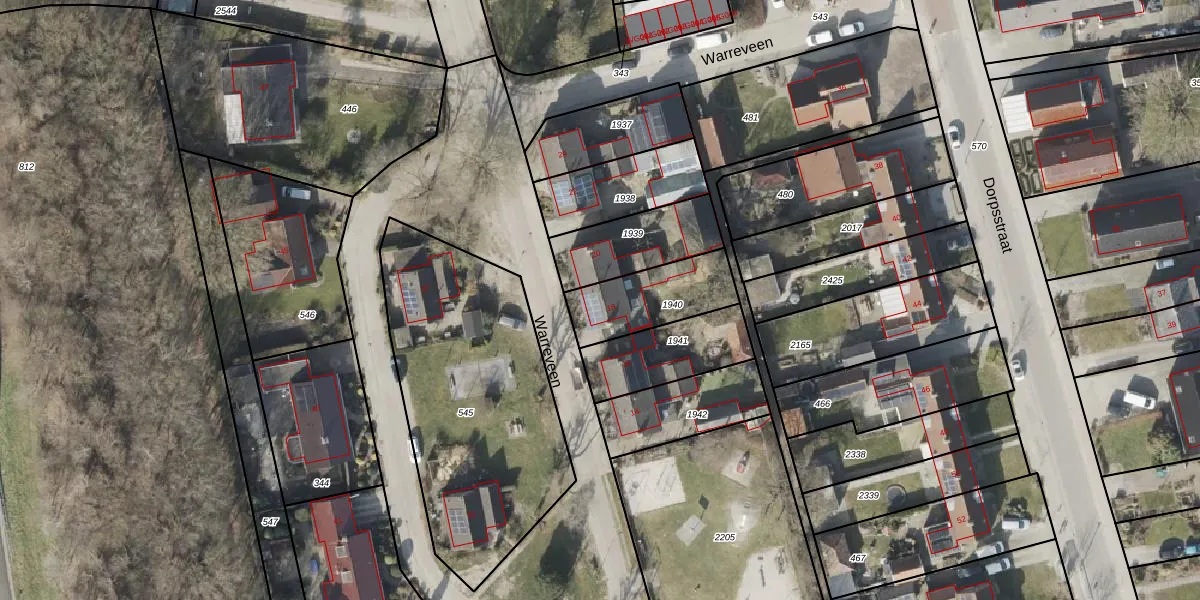 Gebruik de zoekbalk of klik op een perceel voor informatie over de adressen binnen dit perceel.