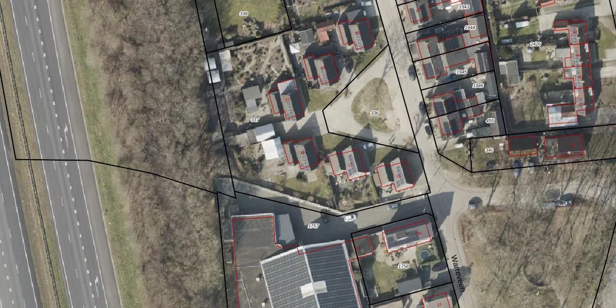 Het perceel waarop Warreveen 19 staat heeft een oppervlakte van 3571 m². Dit is een zeer groot perceel. De perceeloppervlakte wordt geregistreerd door het Kadaster. Gedetailleerde informatie over de maten van dit perceel kunt u vinden in het rapport Kadastrale kaart met maatvoering van Warreveen 19.
