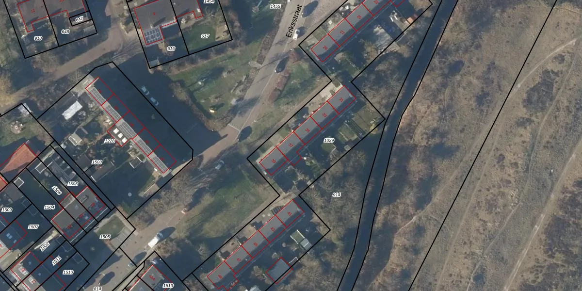 Het perceel waarop Eriksstraat 37 staat heeft een oppervlakte van 3675 m². Dit is een zeer groot perceel. De perceeloppervlakte wordt geregistreerd door het Kadaster. Gedetailleerde informatie over de maten van dit perceel kunt u vinden in het rapport Kadastrale kaart met maatvoering van Eriksstraat 37.