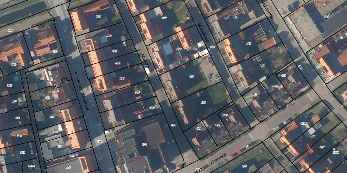 Het perceel waarop Muiweg 4 staat heeft een oppervlakte van 587 m². Dit is een groot perceel. De perceeloppervlakte wordt geregistreerd door het Kadaster. Gedetailleerde informatie over de maten van dit perceel kunt u vinden in het rapport Kadastrale kaart met maatvoering van Muiweg 4.