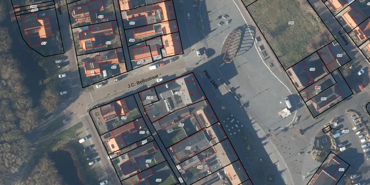 Het perceel waarop Plein 1945 10 staat heeft een oppervlakte van 465 m². Dit is een groot perceel. De perceeloppervlakte wordt geregistreerd door het Kadaster. Gedetailleerde informatie over de maten van dit perceel kunt u vinden in het rapport Kadastrale kaart met maatvoering van Plein 1945 10.