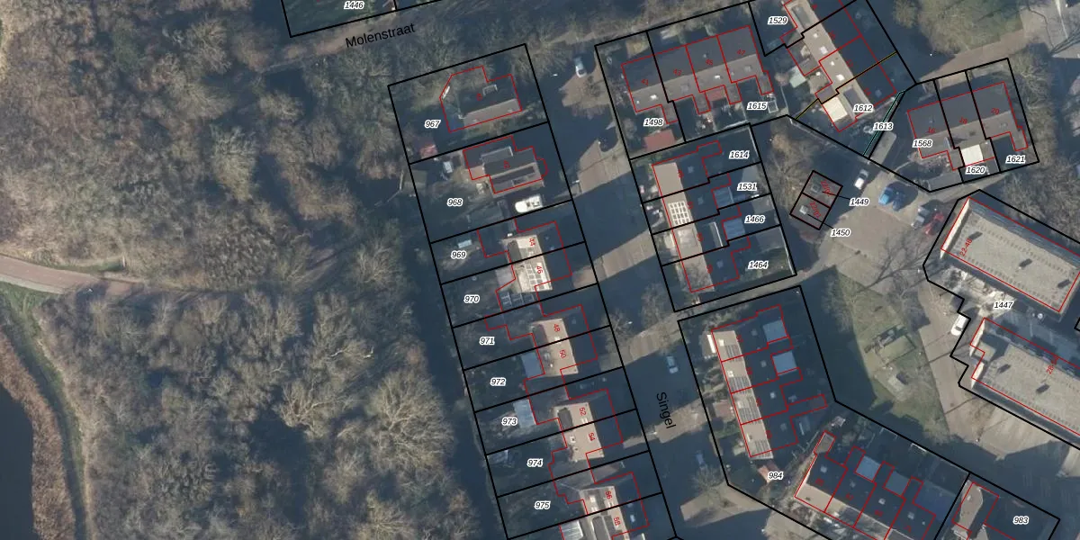 Het perceel waarop Singel 46 staat heeft een oppervlakte van 226 m². Dit is een middelgroot perceel. De perceeloppervlakte wordt geregistreerd door het Kadaster. Gedetailleerde informatie over de maten van dit perceel kunt u vinden in het rapport Kadastrale kaart met maatvoering van Singel 46.