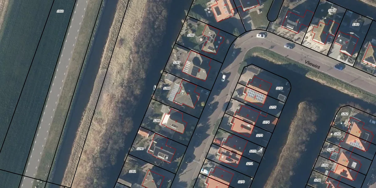 Het perceel waarop Vliewint 43 staat heeft een oppervlakte van 440 m². Dit is een groot perceel. De perceeloppervlakte wordt geregistreerd door het Kadaster. Gedetailleerde informatie over de maten van dit perceel kunt u vinden in het rapport Kadastrale kaart met maatvoering van Vliewint 43.
