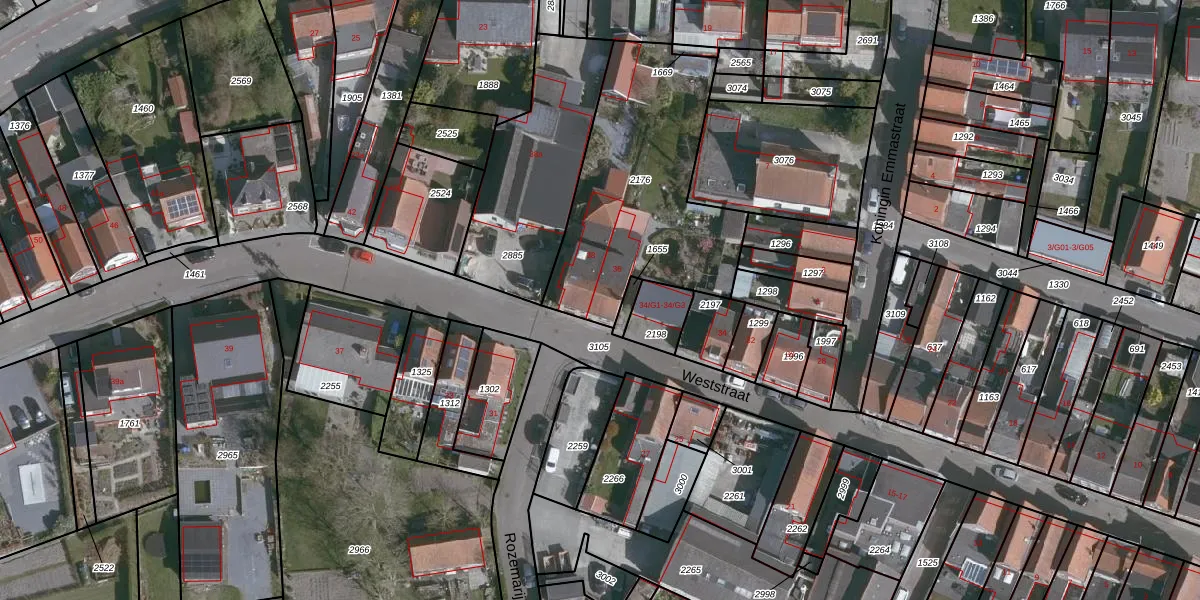 Het perceel waarop Weststraat 36 staat heeft een oppervlakte van 957 m². Dit is een groot perceel. De perceeloppervlakte wordt geregistreerd door het Kadaster. Gedetailleerde informatie over de maten van dit perceel kunt u vinden in het rapport Kadastrale kaart met maatvoering van Weststraat 36.
